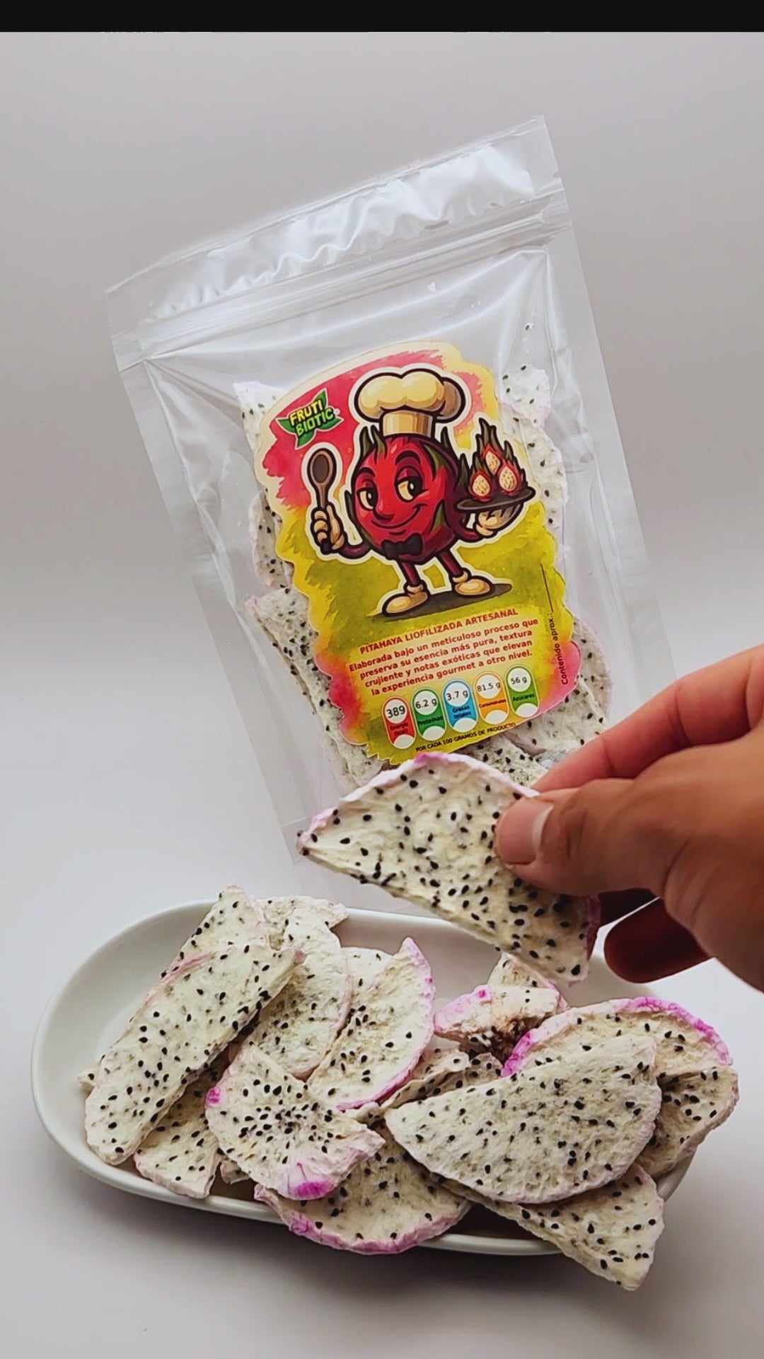 Nuestra fruta elimina el contenido de agua por un proceso de ultracongelación y vacío. . .